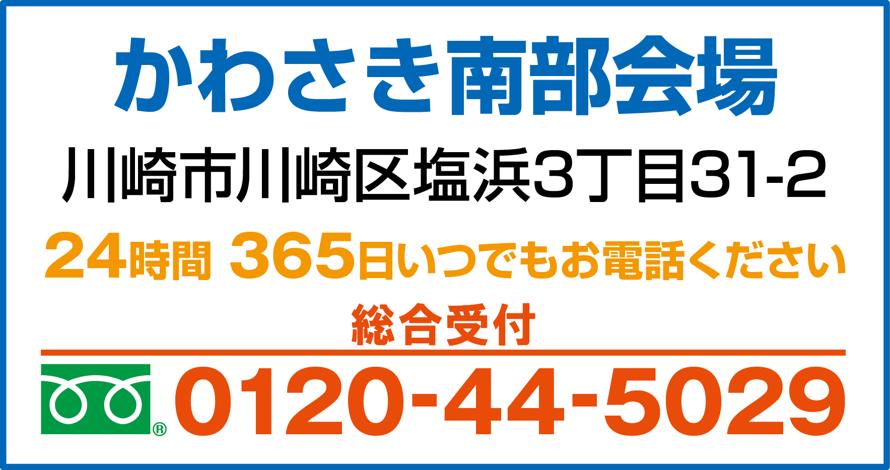 かわさき南部会場では「かわさき南部斎苑」での火葬が適用